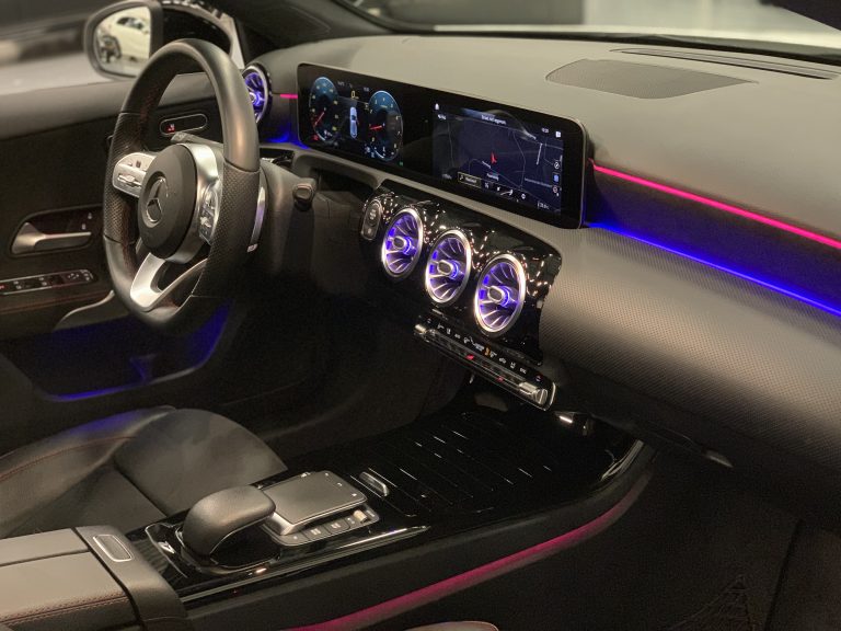 Echter zit het grote verschil bij de nieuwe A-klasse in het interieur. Blikvanger is de widescreen cockpit met hoge resolutie en touchscreen-bediening. Het dashboard is verdeeld in twee driedimensionale, horizontale secties: de onderste wordt visueel van de bovenste gescheiden door een ”sleuf” en lijkt voor het dashboard te zweven. In combinatie met de sfeerverlichting zorgt dit voor een onovertroffen ruimtebeleving.