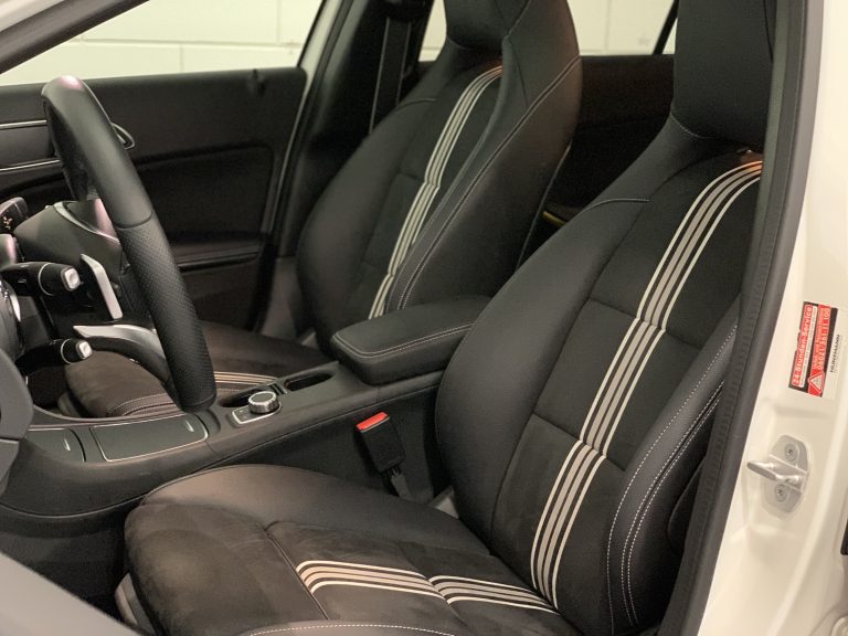 Het exemplaar dat wij aanbieden is voorzien van het Night en AMG pakket. Bij het Night pakket krijg je een aantal hoogglans zwarte onderdelen zoals de spiegels en de raamlijsten. Het AMG-pakket geeft de A-klasse net even een wat sportievere look. De Diamond Grille, 18 inch Licht metalen AMG-velgen en het glazen panoramadak zetten de puntjes op de i voor de Mercedes. Verder gaat het om een Peak uitvoering van Mercedes. Herkenbaar voor de Peak Edition zijn de stoelen bekleed met alcantara en de luchtroosters omringd met witte accenten.